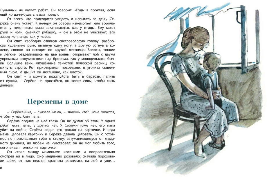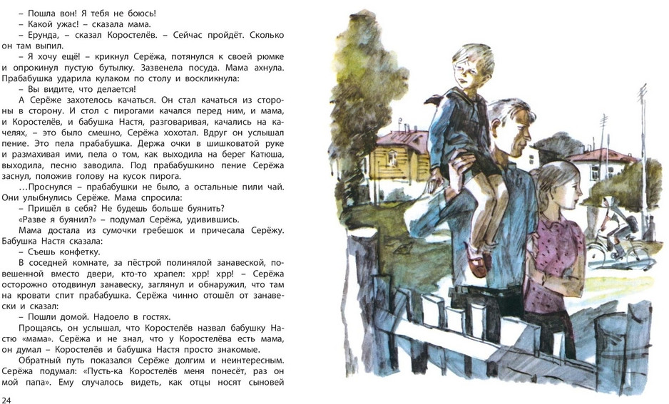 Хорошая книга, совсем не детская. Мне кажется, написана она для нас, взрослых, чтобы мы не забывали как это быть - маленьким, чтобы не совершали поступков в отношении наших детей, о которых можем сильно сожалеть после. Автор невероятно просто и невероятно глубоко пишет о психологии ребенка. Мир предстает перед нами глазами мальчика Сережи, мы вместе с ним как бы заново открываем его. Очень деликатно затронута тема неполной семьи, появления в ней нового родителя, а после и рождения нового малыша. Как было бы здорово если бы каждый родитель был так чуток к своему ребенку, как отчим Сережи, ставший для него самым близким и любимым человеком в жизни! К этой книге можно возвращаться вновь и вновь, она вне времени. Рекомендую всем родителям - настоящим и будущим - к прочтению.