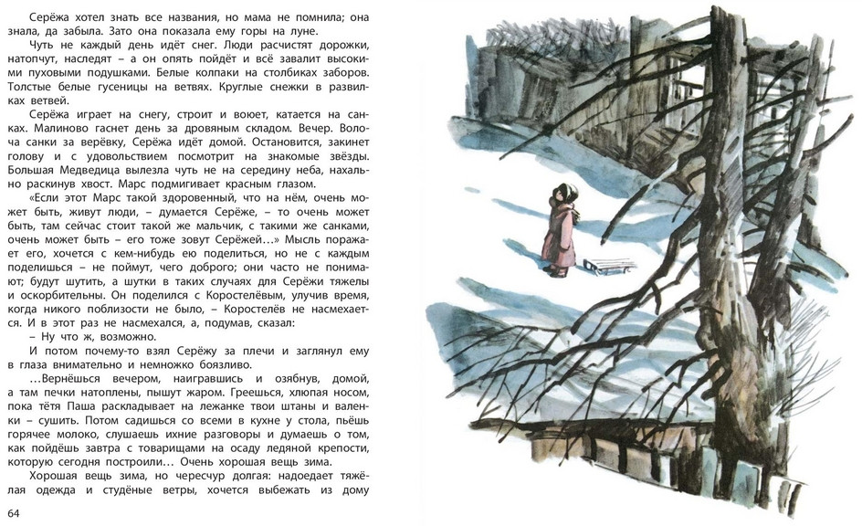 💳 Оплатить за товар можно при получении 🇰🇿 Есть бесплатная доставка по Казахстану от 1 дня 🎁 Копите бонусы с каждой покупки Серия: Читаем всей семьёй Созданная в 1955 году повесть пронизана светом – это трогательная поэма детства, восприятие мира глазами шестилетнего мальчика. Как многие дети послевоенного времени, Серёже растет без отца, его папа погиб на войне. Однако война отошла в прошлое, жизнь продолжается, и в их с мамой семью входит отчим – бывший фронтовик, человек честный, умный и добрый. |