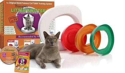 Litter Kwitter — первая оригинальная система приучения кошек к унитазу. Теперь практически любой кот или кошка может научиться запрыгивать на унитаз и пользоваться им по назначению! Все, что вам останется сделать — это спустить воду. Ни грязи, ни запаха, ни чистки лотка, ни затрат на наполнитель!
