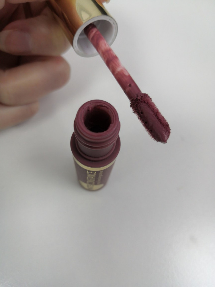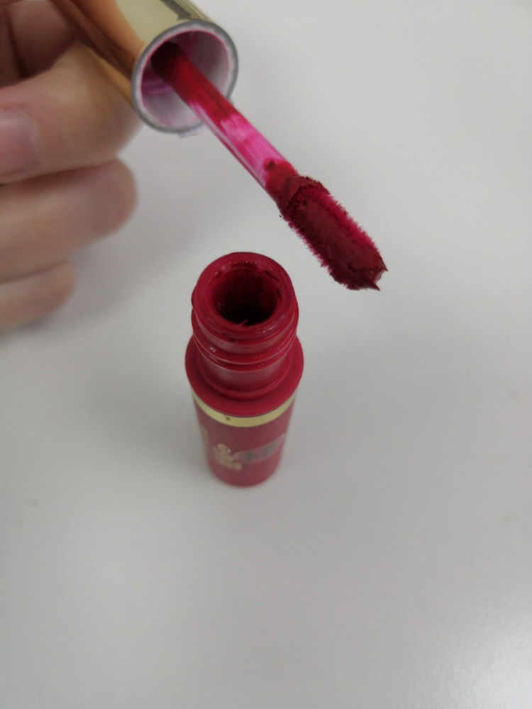 Взял цвет фуксии, действительно, цвет яркой фуксии. Ложится ровно, на губах не ощущается, чувства сухости нет.
