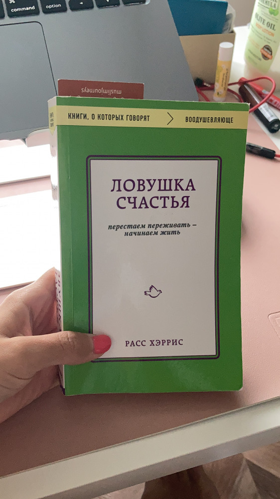 Книгу дочитываю, очень хорошая и практичная книга. Ее мне посоветовала очень грамотный психолог. Книга действительна помогает если у вас есть тревоги, депрессия, панические атаки. Очень советую прочитать если вы испытываете данные перечисленные эмоции. Книга может спасти вас от многих неудач. Может звучать как маркетинг или пиар, но как раз таки очень много тех книг, которые обещают многого, но на деле бесполезные, или даже наоборот лишь добавляет больше огня в горящую вашу тревогу. А данная книга же - ловушка счастья, наоборот, даёт реальные упражнения, которые в итоге действительно помогают эффективно принять все эти негативные эмоции, помогает подружится с ними чтобы дать и им и вашим хорошим мыслям пространство существовать вместе дружно. Таким способом вы исцеляете раненную душу, и может быть, начинаете смотреть на вещи по-другому. Возможно даже справитесь с самыми сложными целями в жизни. Удачи вам!