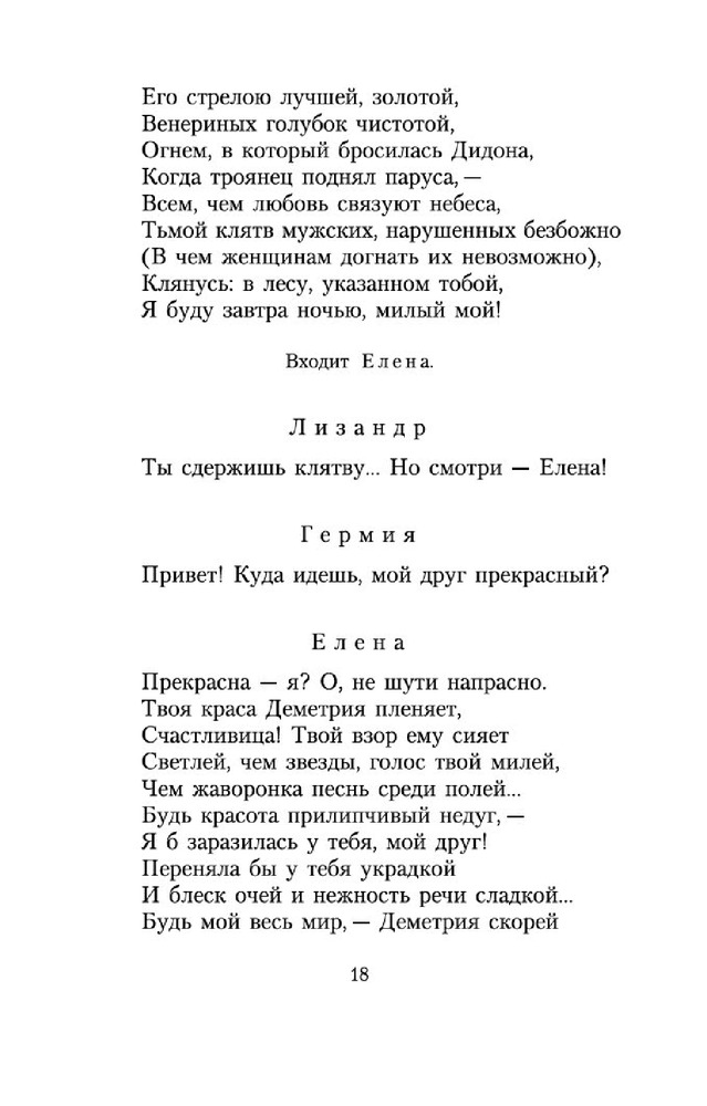 Сон в летнюю ночьВ данный момент этот товар отсутствует в продаже. Возможно, у нас найдется аналогичный или похожий товар здесь. Серия: Азбука-классика (pocket-book) В книгу включена знаменитая шекспировская комедия об изменчивости любви, в сюжете которой мир древних Афин соседствует с фантастическим миром эльфов, а персонажи английского фольклора и средневековых рыцарских романов — с образами «Метаморфоз» Овидия. Герои пьесы, пребывающие в озаренном луной зачарованном летнем лесу, становятся игрушками фортуны и совершают необычные, причудливые, экстравагантные поступки. Магия волшебного цветка, сок которого внушает человеку безоглядную любовь к первому встречному, становится причиной удивительных превращений и вереницы трагикомических недоразумений; однако власть могущественного короля эльфов Оберона приводит события, как и положено в комедии, к счастливому концу. |
