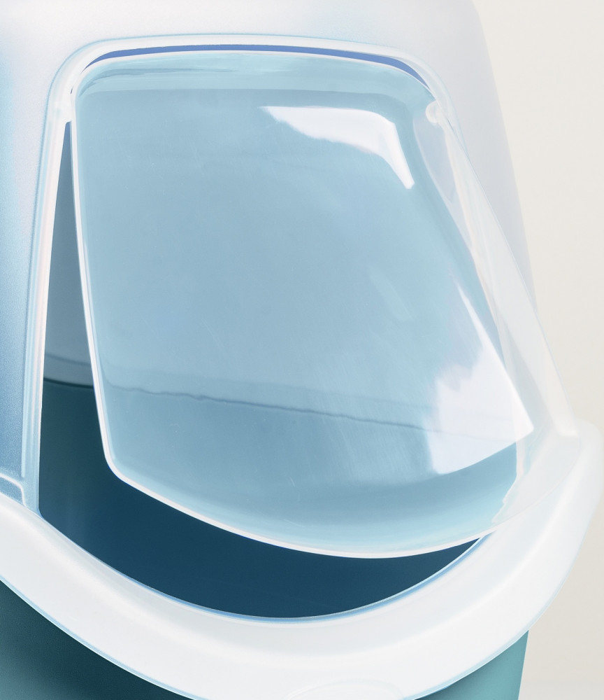 Заказываю лоток-домик уже во второй раз (первый купила больше полугода назад, та же модель, только зелёного цвета), потому что это настоящий маст-хэв для всех котодержателей! Думаю всем известно, что количество лотков в доме рассчитывается по количеству кошек + 1 дополнительный. У меня две кошки, соответственно, имеется 3 лотка - один закрытый домик Cathy и два обычных открытых. Из-за переезда на новую квартиру остро встал вопрос о покупке еще одного лотка-домика, чтобы было поменьше запахов, раскиданного наполнителя, а гостям с порога не было видно содержимое кошачьего туалета. Не раздумывая, снова заказала ту же модель, потому что она проверена временем и кошками:D Да и дизайн лотка Cathy мне больше всех на сайте нравится. Теперь о его плюсах: несмотря на отсутствие угольного фильтра, запах держит на 5+, на полу возле лотка почти нет мусора из-за дверцы, большой - кошке среднего размера 3-5 кг будет там очень комфортно и просторно, пластик качественный и легко моется тряпочкой с мылом, кошачья моча не кристаллизуется на дне, потому что пластик очень гладкий, лёгок и удобен в сборке и разборке, а также в использовании - достаточно снять верхнюю белую крышку, чтобы получить доступ к кошачьим "сюрпризам". Из минусов могу отметить только два пункта: сильный грохот при закапывании наполнителя и, если у вас маленькая квартира и совсем нет места, то могут возникнуть проблемы с тем, куда поставить такой большой лоток (56см*40см*40см)... С другой стороны, его красивый стильный дизайн и непропускание запахов позволяют ставить лоток на видное место даже в жилую комнату (мои гости всегда думают, что это переноска или просто домик для сна).