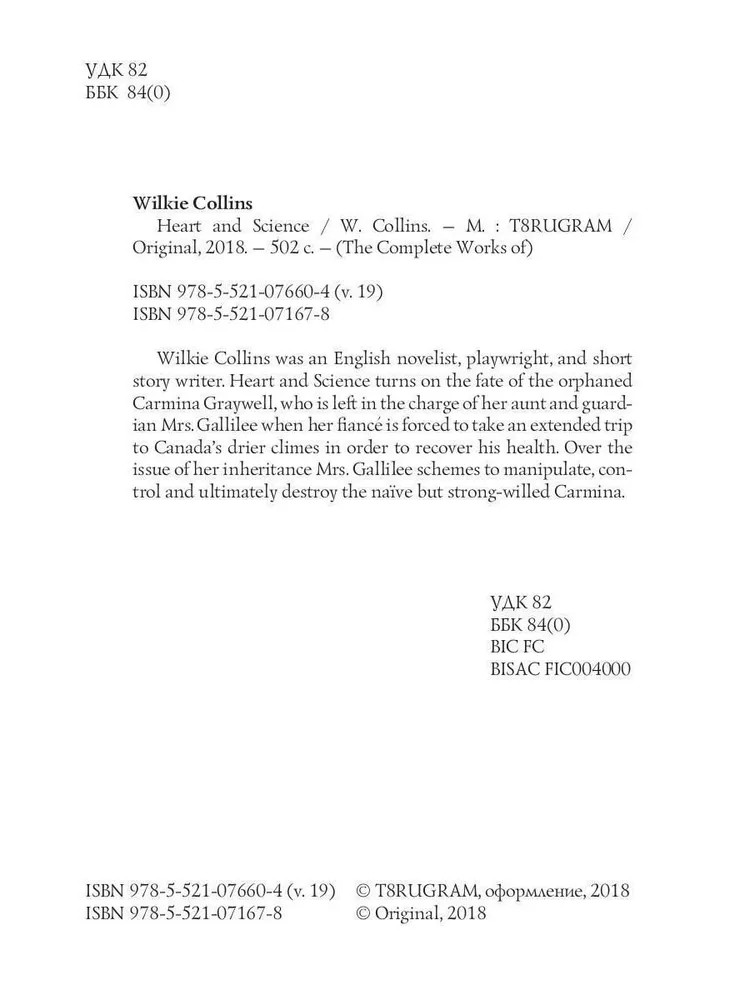 💳 Оплатить за товар можно при получении 🇰🇿 Есть бесплатная доставка по Казахстану 🎁 Копите бонусы с каждой покупки Серия: The Complete Works of Wilkie Collins was an English novelist, playwright, and short story writer. Heart and Science turns on the fate of the orphaned Carmina Graywell, who is left in the charge of her aunt and guardian Mrs. Gallilee when her fiance is forced to take an extended trip to Canada’s drier climes in order to recover his health, Over the issue of her inheritance Mrs. Gallilee schemes to manipulate, control and ultimately destroy the naive but strong-willed Carmina. |