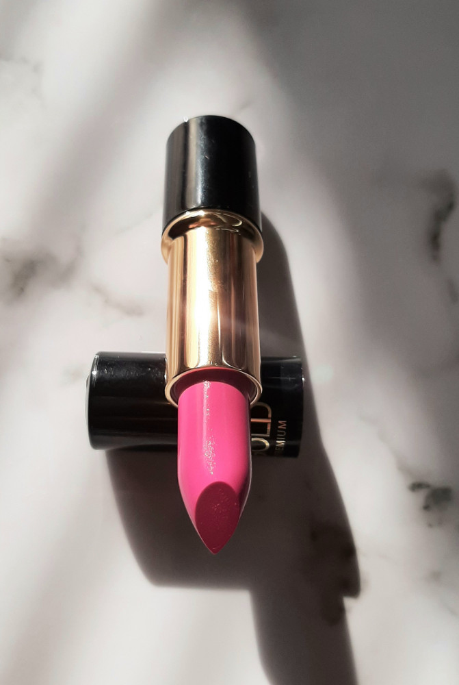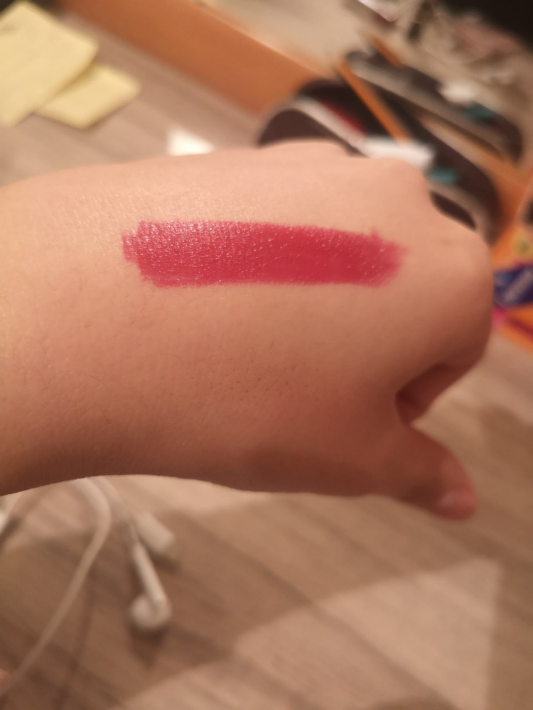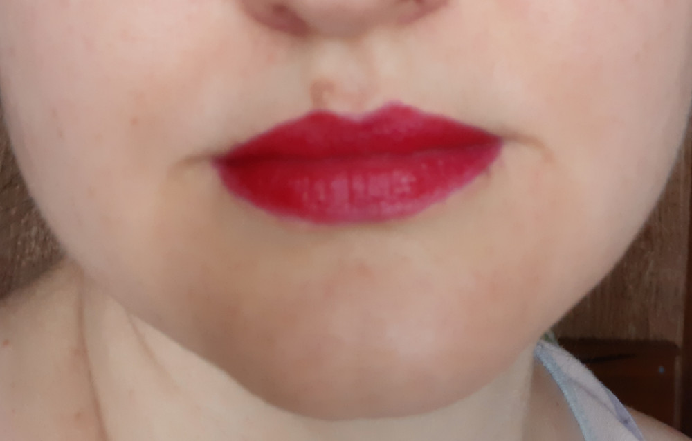 Яркий, насыщенный цвет! Очень красивая помада! Хорошо ложится, не размазывается.
