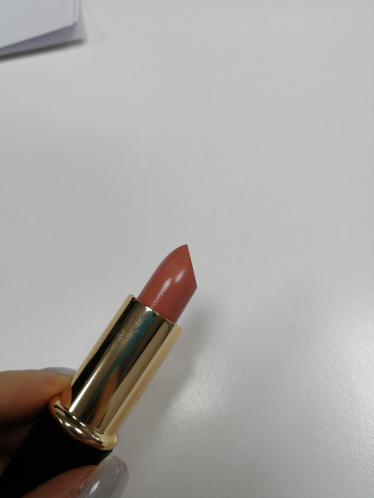 Тон 371, нюдовый. Помада мягкая, ложится хорошо. Губы не сушит, не скатывается. Запах старых советских помад, для меня это не критично.