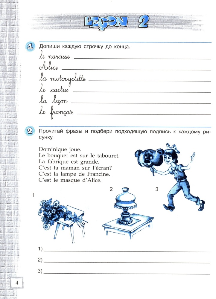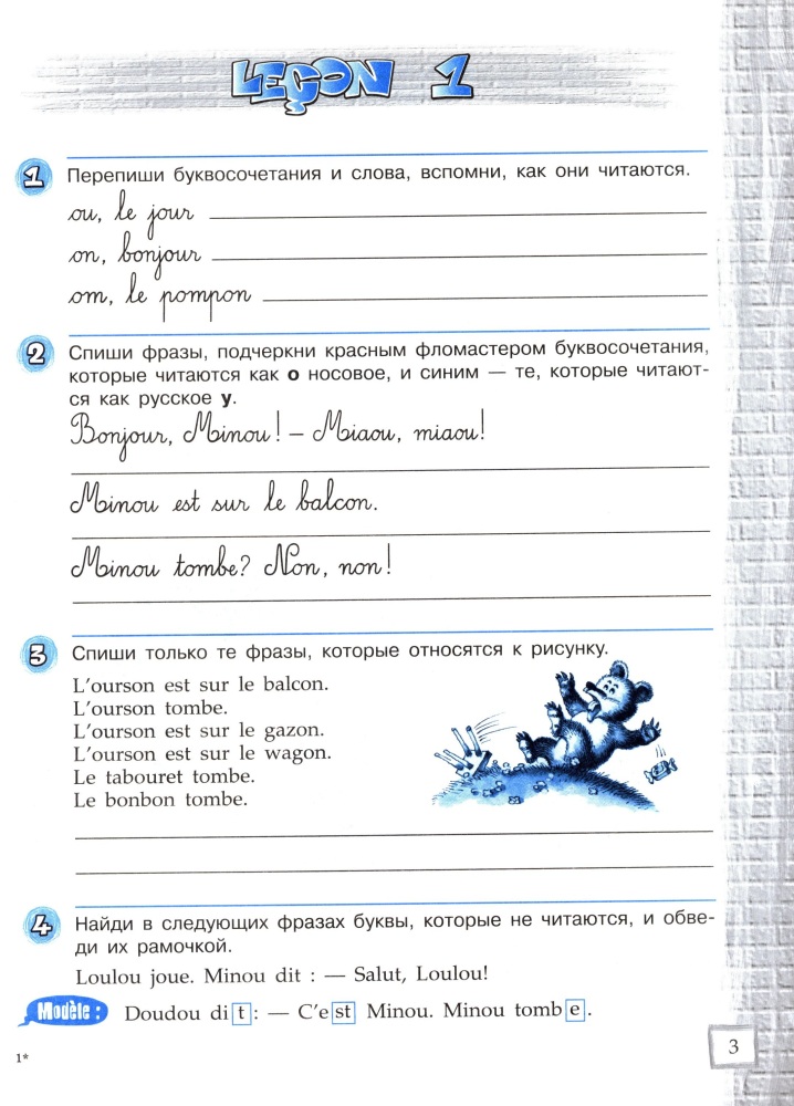 Покупали для дополнительных занятий по французскому языку. Бумага очень хорошая, не глянцевая. Может писать карандашом и стирается очень хорошо. Переплет хороший. Издание свежее.