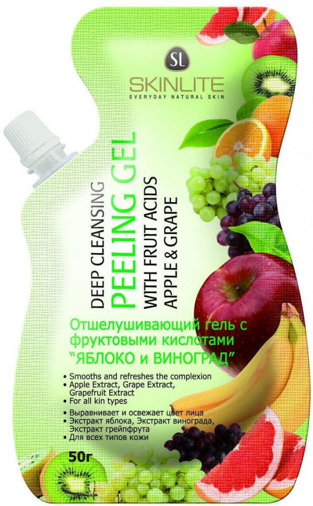 Skinlite Гель-пилинг отшелушивающий «Яблоко и виноград»В данный момент этот товар отсутствует в продаже. Возможно, у нас найдется аналогичный или похожий товар здесь. Выравнивает и освежает цвет лица. Экстракт яблока, Экстракт винограда, Экстракт грейпфрута. Для всех типов кожи 50г Гель-пилинг с фруктовыми кислотами «Skinlite «яблоко И Виноград» предназначен для отшелушивания роговых клеток и обновления эпидермиса. Не содержит абразивных частиц. Действие гель-пилинга основано на использовании фруктовых экстрактов и кислот, которые не только мягко очищают кожу, естественным образом размягчая ее верхний слой, но и содержат незаменимые для кожи аминокислоты и витамины, активизирующие клеточную регенерацию и способствующих уменьшению морщинок. Нежный гель-пилинг на основе фруктовых кислот подарит коже ощущение чистоты и обновления. |