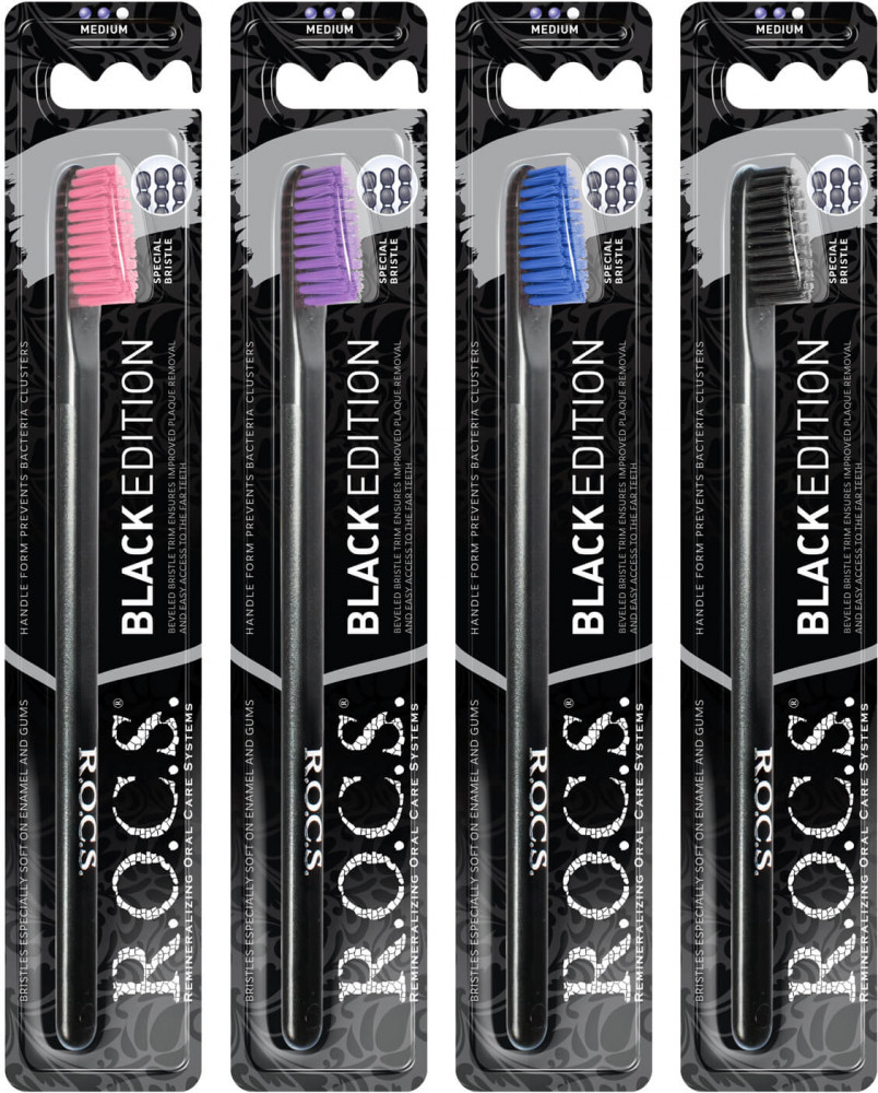 R.O.C.S. Зубная щетка «Black Edition Classic» средняя-20% +54 удобная ручка качественная чистка средняя жесткость дальние зубы