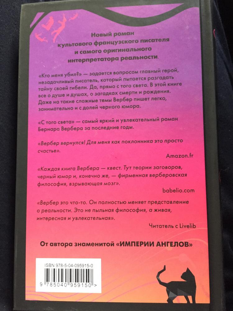 Книга простовата. Не хватает глубины. В литературе я поклонник сложных речевых оборотов, вдумчивых, если можно так сказать, книг, детальных описаний, небанального. К тому же я вообще не поклонник современной прозы и фантастики. Один мой знакомый сказал мне, что "С того света" - типичный масс-маркет. И это очень точно. Странный сюжет, который в течение повествования всё пытаются накрутить и накрутить, доводя до нелепицы. Куча нестыковок в мелочах. Простота изложения. Но пара интересных мыслей всё-таки есть. А именно монолог героя касательно своей скоропостижной смерти и его размышления по поводу того, сколько всего было не реализовано. Вот тут то я и призадумалась. Действительно. Если бы я умерла сейчас. О чем бы я сожалела? И я бы начала долгое, долгое, очень долгое повествование о том какая наша жизнь короткая и...и хрупкая. Время дано нам для созидания. Созидания не только материального, но и невещественного. Ежеминутное питание энергией и наслаждение существованием. И бла бла бла... Идея и основная мысль книги одна - у нас слишком мало времени, и банальное - нужно ценить то, что имеем. В целом, книга повеселила и снова вернула меня в строй осознающих счастье бытия. И разочек, для разнообразия прочитать ее можно. К тому же читается очень легко.