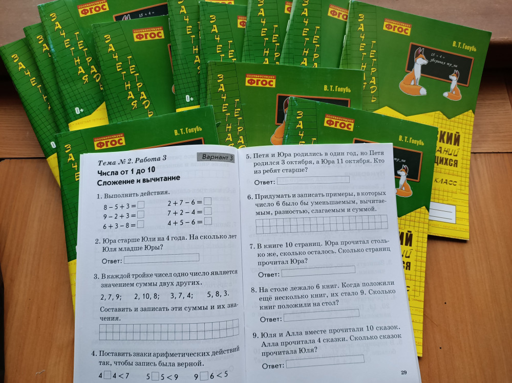 Хорошая рабочая тетрадь. Все задания идут в двух вариантах. Крупный текст, который легко прочитает ребенок самостоятельно. Широкие строчки для ответов. Бумага тонковата, но это не смертельно. Первая половина тетради - это задания по математике, вторая - задания по русской грамоте. Задания охватывают практически весь курс первого класса, что и было необходимо. Отличная вещь для повторения пройденного материала.