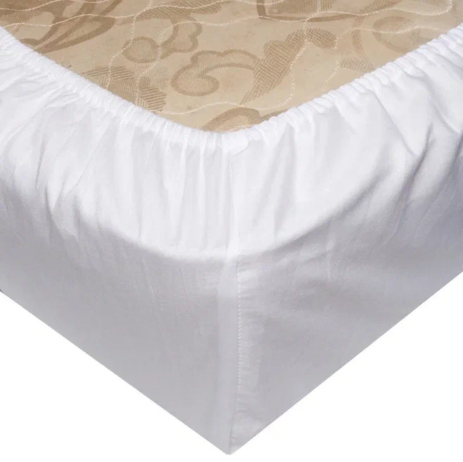 Хорошая простыня из сатина приятного цвета топленого молока. Хорошо держится на матраце с наматрацником. В отличие от простыней натяжных из трикотажа, у которых резинка по всему периметру простыни, у этой простыни резинки только по углам, которые хорошо держат ее, не позволяя сползать с матраца. Желательно использовать ее в прохладное время года, она не "холодит"