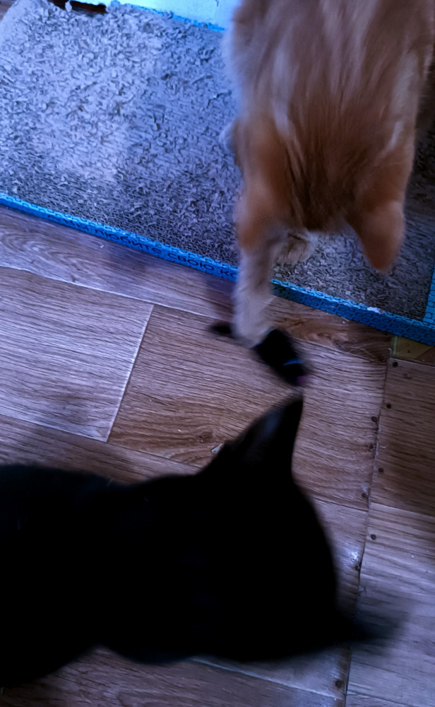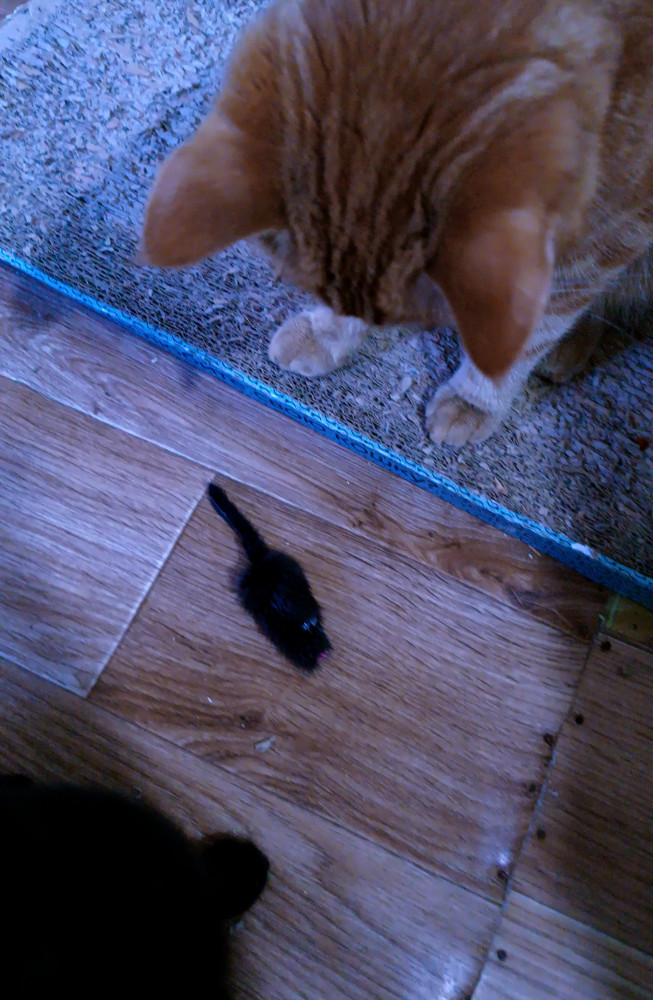Мышка не такая, как на фото, ожидала чуть большего размера и другой расцветки. Коты не согласны с моими разочарованиями, во всю веселятся, отнимая ее друг у друга, рычат, гудят, явно приняли за живую. Котенок в борьбе за мышь надавал взрослому коту со всей серьёзностью разъяренного льва. А нечего есть его мышь. Надолго ее не хватит конечно, но пару дней веселья обеспечены.