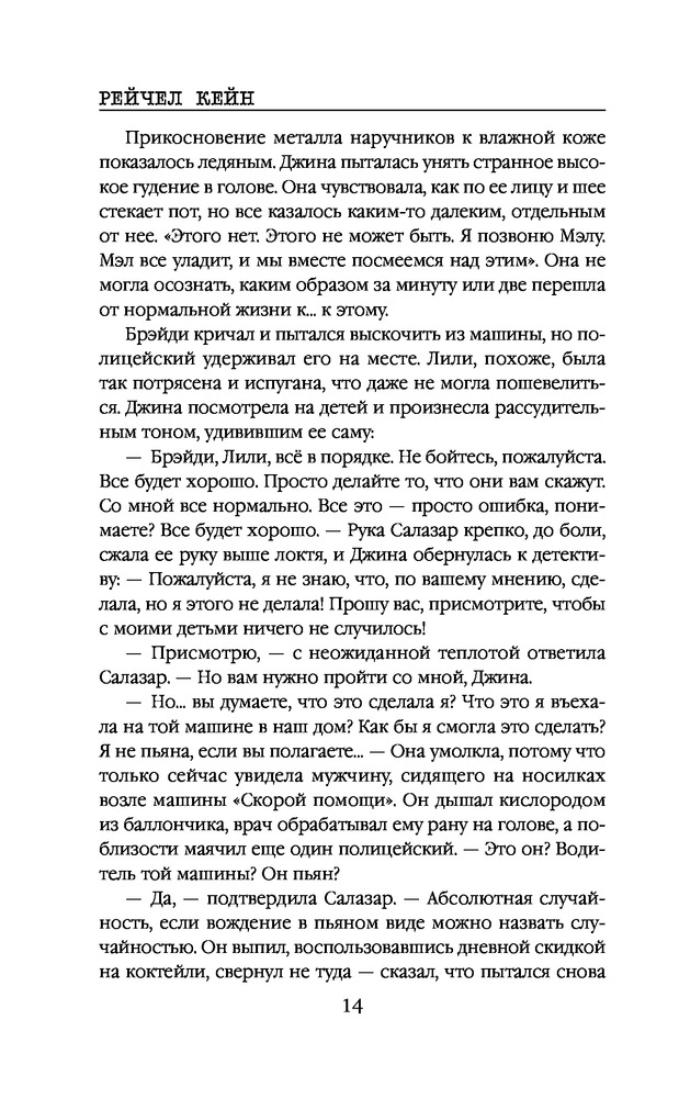 Много читала про эту книгу, решила все таки купить. Первую половину книги пожалела несколько раз о ее покупке. Слишком все затянуто, дотошно описана каждая мелочь и все одно и тоже и вокруг того же, паранойя героини и постоянное описание любви к ее детям надоедает конкретно. Кто убийца было ясно с момента похищения детей. Но ближе к окончанию сюжет набирает обороты и становится более интересным. От книги ожидала большего и совсем другого, НО не особо разочарована и этим написанием (второй половиной книги).