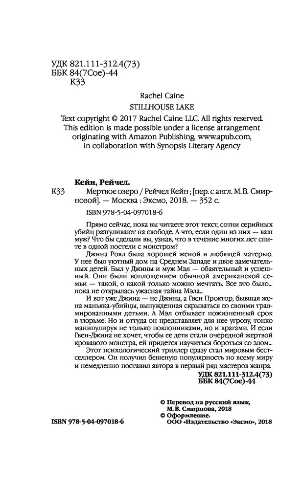 💳 Оплатить за товар можно при получении 🇰🇿 Есть бесплатная доставка по Казахстану от 1 дня 🎁 Копите бонусы с каждой покупки Серия: Мертвое озеро. Бестселлер Amazon Прямо сейчас, пока вы читаете этот текст, сотни серийных убийц разгуливают на свободе. А что, если один из них — ваш муж? Что бы сделали вы, узнав, что в течение многих лет спите в одной постели с монстром? |