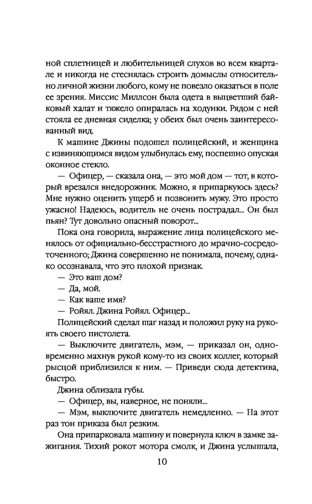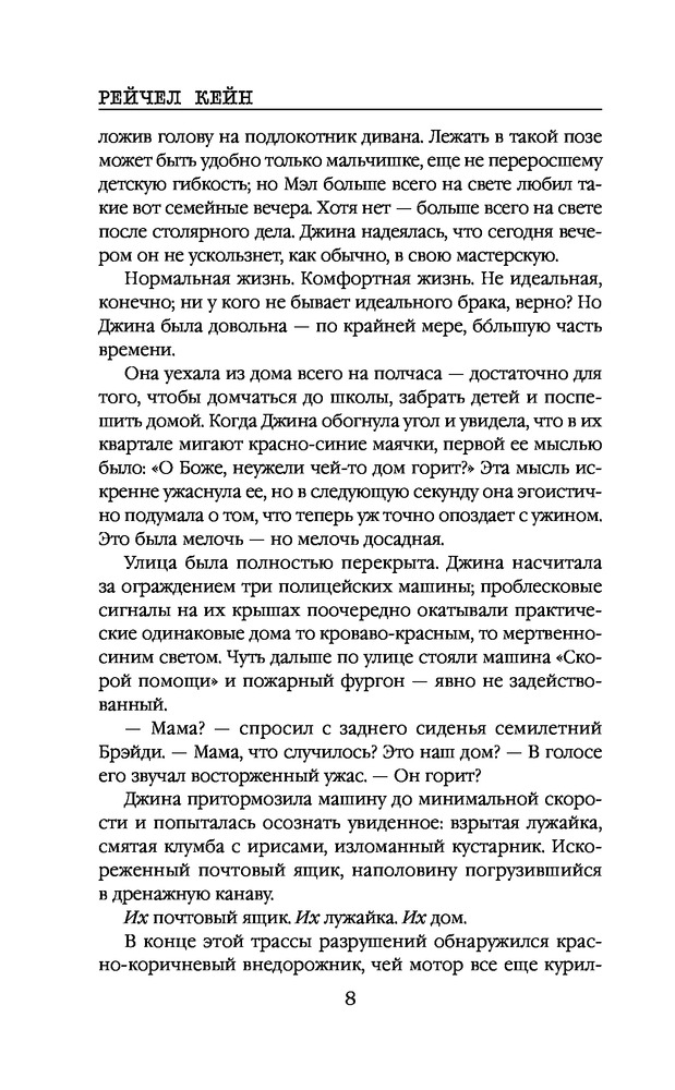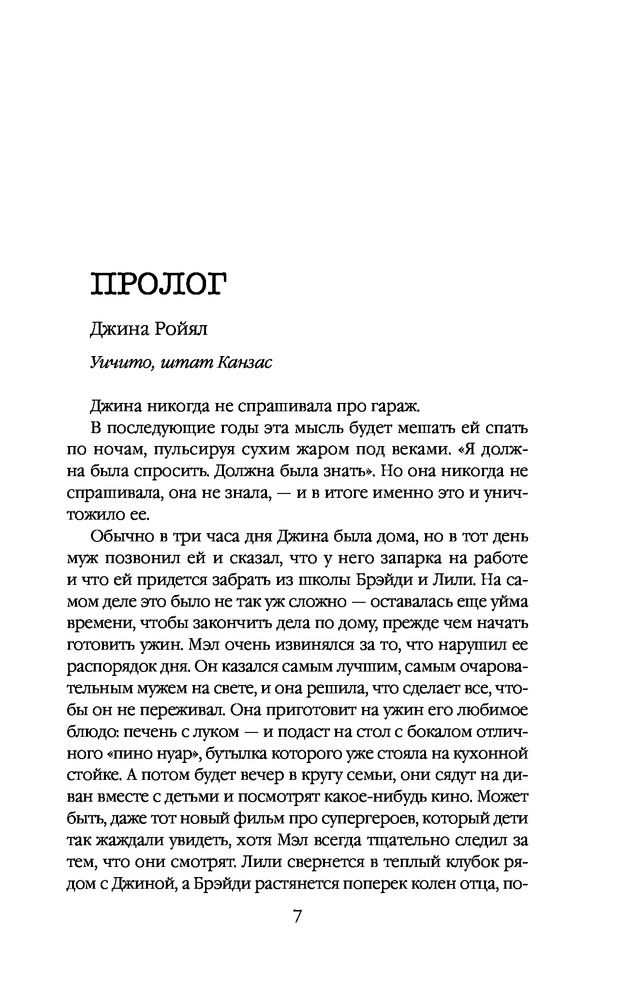 ⠀🔸Представьте, американскую семью с обложки. Она – любимая жена, мать двух прекрасных детишек, каждое утро готовящая вкусные ужины и ждущая вечером главу семейства. Он спокойный, милый муж, который заботится и кормит всю свою семью. У него есть хобби, он любит после работы уединяться в гараже, и строгать из дерева. Она не мешает и даже не заходит в гараж, ведь любому мужчине хочется после тяжёлого рабочего дня расслабиться одному… 🔹Один несчастный случай и её мирной и спокойной жизни приходит конец в одночасье. Жизнь Джины Роял перевернулась с ног на голову. Ведь хобби ее мужа Мэла Роял, на самом деле скрывает ужасные извращения,монстр-убийца многих девушек. И этот чудовищный маньяк на протяжении 10 лет был ее мужем. Каждый вечер он пытал, расчленял и убивал своих жертв и спокойно шёл домой, целовал своих детей и ложился с ней в одну кровать. И ведь кто может поверить в то, что ни разу у неё так и не возникло желания посмотреть, что же на самом деле он делал в гараже? Кто поверит, что она не виновна и не покрывает деяния своего мужа? 🔸Её оправдали, и она вынуждена с двумя детьми скрываться от людей, меняя имена. Любое подозрение к их личностям, и она, стремглав, все бросает и уезжает в другие места. Ведь у них много врагов, родственники умерших жертв, которые хотят совершить свой личный самосуд и казнить «соучастника», по их мнению. И детей в том числе…как говорится зуб за зуб. Но не только их стоит бояться, но и также бывшего мужа, который, даже сидя в тюрьме, может натравить на неё людей…Из наивной глупышки она вынуждена превратиться в вооружённого солдата, готовая на все ради сохранения безопасности своих детей. 🔹Вначале книга читалась медленно, автор затянула вводную часть и в некоторых местах было скучно …Но чем дальше читаешь, тем хочется быстрее узнать, что же будет дальше. Да, это не супер триллер, не пощекотает вам нервишки. Слог легкий, свежий сюжет и ваш досуг может скрасит