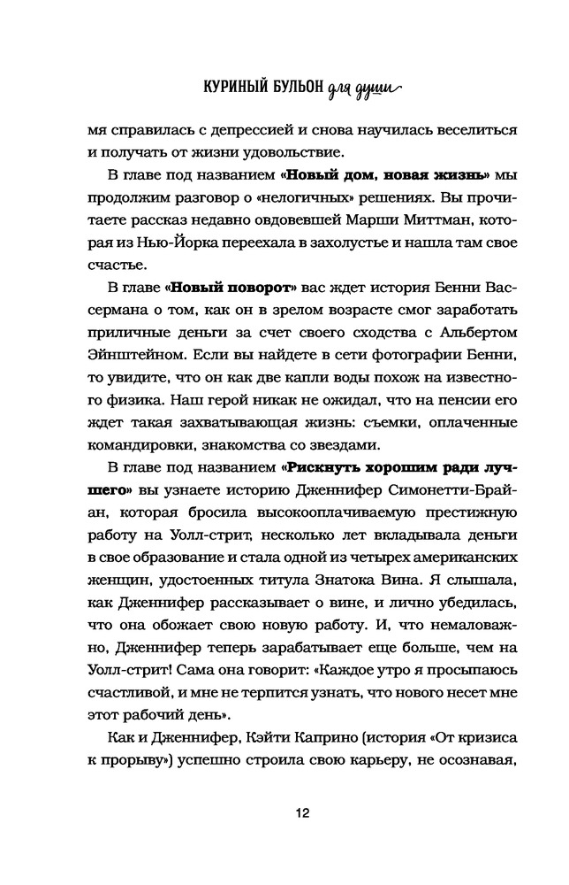 По этой книге я поняла, что не люблю маленькие рассказы. Все-таки мне нравится переживать все эмоции с героем...Поэтому книга предназначена для тех, кто боится бросить возможно нервную, скучную, малооплачиваемую работу и заняться любимым делом.