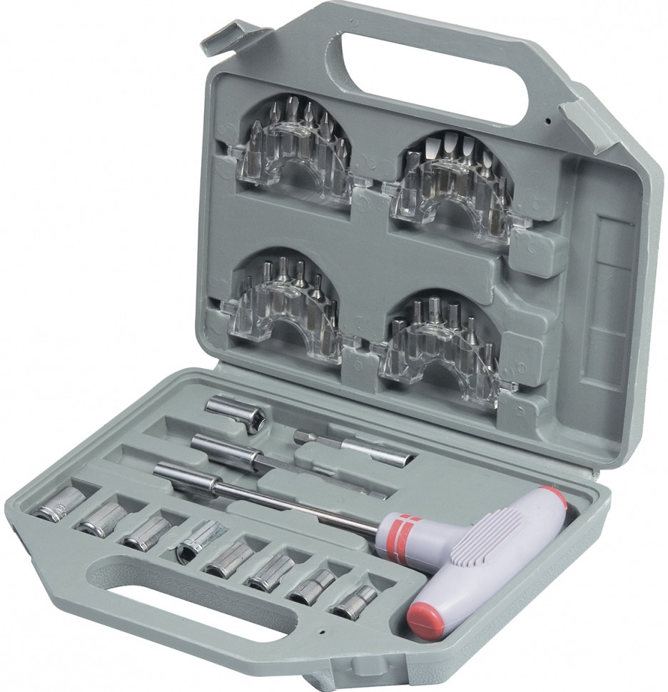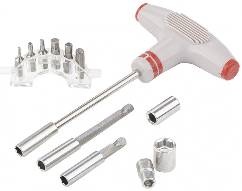 💳 Оплатить за товар можно при получении 🇰🇿 Есть бесплатная доставка по Казахстану от 1 дня 🎁 Копите бонусы с каждой покупки Отвертка предназначена для монтажа и демонтажа резьбовых соединений. Эргономичная Т-образная ручка инструмента улучшенного дизайна удобна для работы с усилием. В комплект к отвертке входят биты, изготовленные из хромванадиевой стали, длиной 25 мм с рабочими профилями SL, Phillips и Torx, головками — 4, 6, 7, 8, 9, 10, 11, 12 мм. |