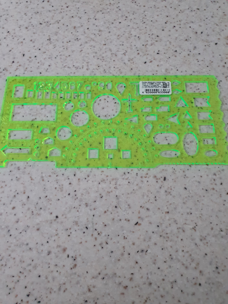 Классная линейка! Для старшеклассника, считаю, незаменима! И транспортир тут, и угольник, и разные фигуры.