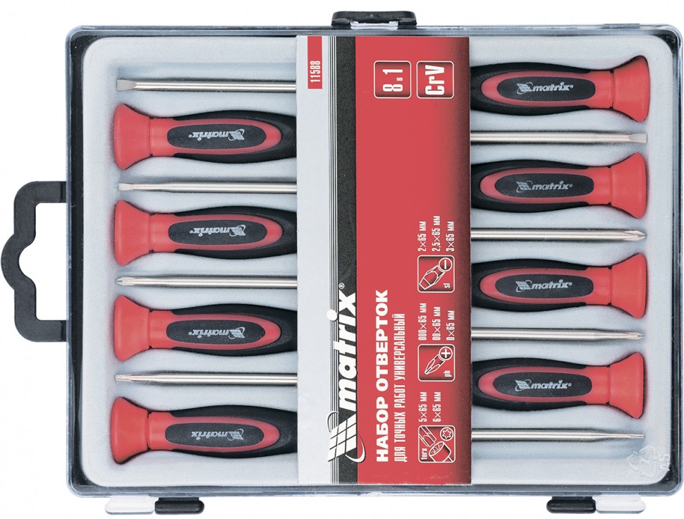 Набор отверток торговой марки Matrix предназначен для завинчивания и отвинчивания резьбовых соединений маленького размера. Отвертки из данного набора незаменимы при работе с электроникой, часами и прочими мелкими соединениями. |