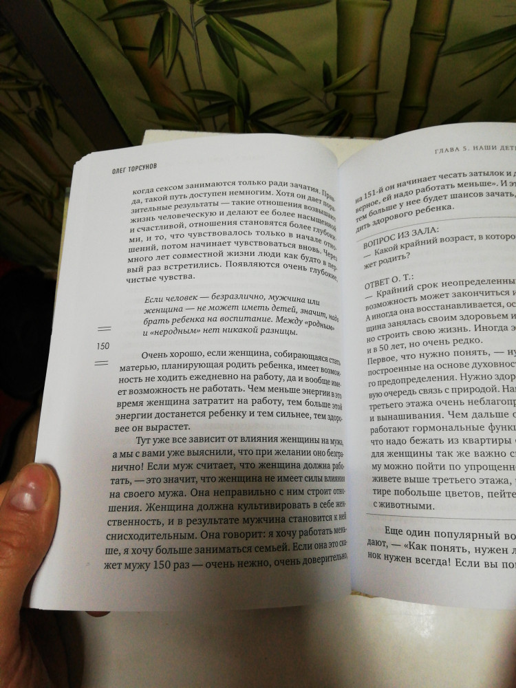 Внешне книга хорошего качества, твёрдый переплёт и белые страницы. По содержанию моя оценка на 3 звезды, прочитала сразу ещё другую книгу О. Торсунова - не понравился автор и его метод изложения мыслей. Много повторов: из текста то же самое вынесено в выделенные ремарки. В итоге с 30 страницы я пролистала прочитав только выделенные абзацы и "о главном в этой главе" в конце раздела (очень удобно оказалось)). Конечно у автора есть истинные и нужные мысли, но у меня возникло какое-то внутреннее отторжение к некоторой информации и в первую очередь к самости, очень много в начале книги расхваливает сам себя и в такой подаче, что не лежит душа, уж слишком приторно и "я" "я", в конце тоже отзывы других людей, отзывы о тренингах и т.п. То ли реклама. То ли внушение, что автору нужно доверять.
