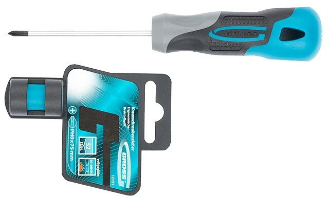 Отвертка торговой марки Gross изготовлена из высококачественной инструментальной стали S2. Предназначена отвертка для монтажа/демонтажа резьбовых соединений с крестообразным типом шлица (PH0).