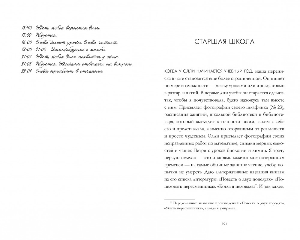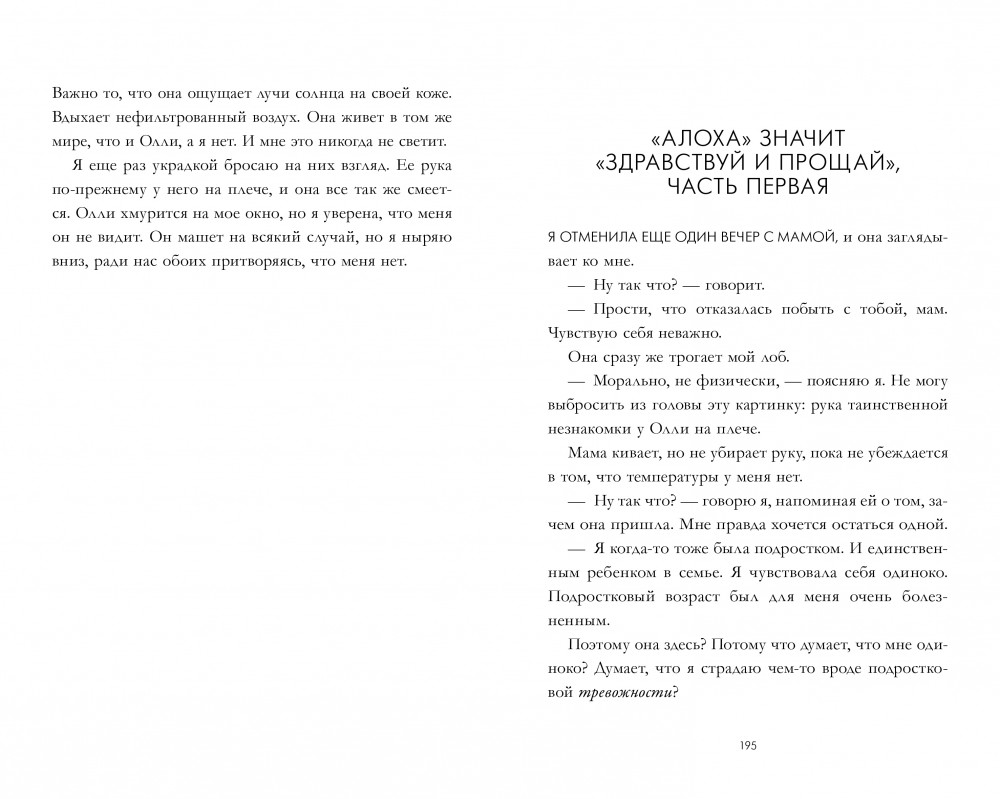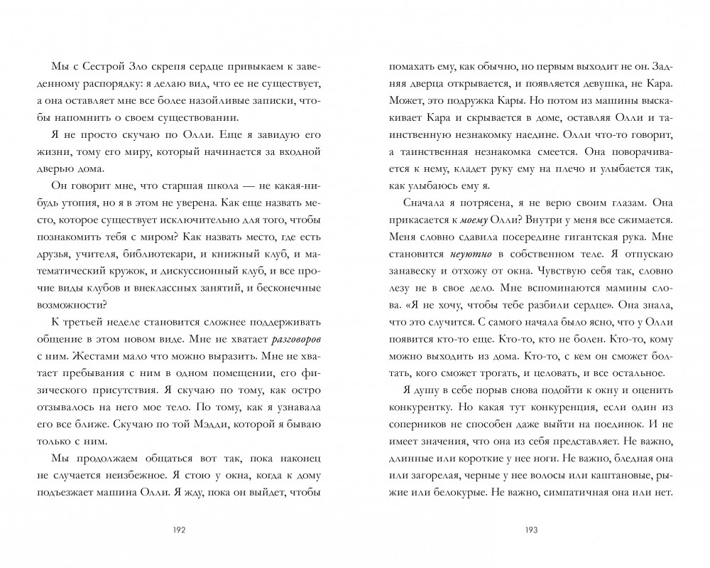 Young Adult. Весь этот мирВ данный момент этот товар отсутствует в продаже. Возможно, у нас найдется аналогичный или похожий товар здесь. Серия: #trendbooks Мэделайн – живет с мамой. И не выходит из дома. Совсем. Никогда. У девочки странное заболевание, вроде как аллергия на жизнь. При любом столкновении с миром людей ей грозит гибель.Но никакие двери и шторы не спрячут от любви. |