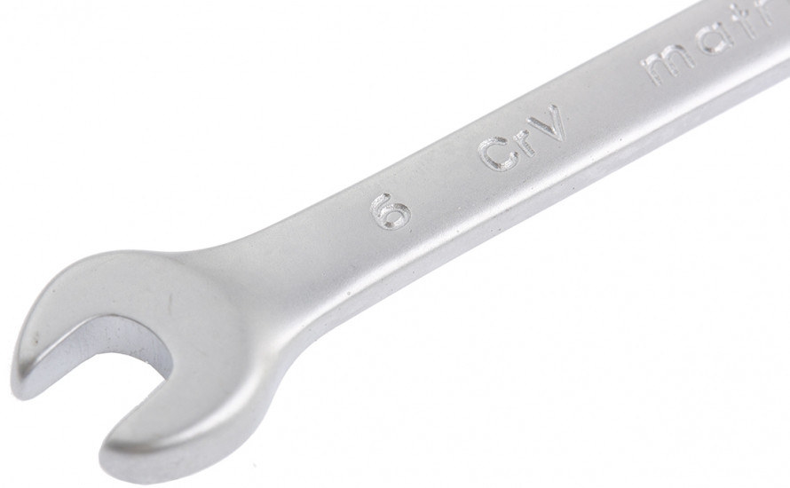 Ключ изготовлен из хромванадиевой стали. Твердость материала рабочей части ключа 45 HRc (требования ГОСТ – 45–51 HRc). Ключ имеет антикоррозионное покрытие из хрома. Профиль кольцевого зева имеет 12 граней, что увеличивает площадь соприкосновения рабочих поверхностей и снижает риск деформации граней крепежа при монтаже. Угол наклона кольцевого зева относительно плоскости ключа в 15 градусов делает монтаж более удобным. Ключ гаечный комбинированный с открытым и кольцевым зевом предназначен для монтажа демонтажа резьбовых соединений.