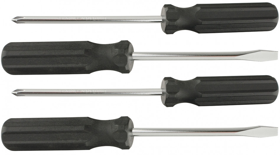 Ударопрочные, маслобензостойкие. Изготовлены из углеродистой стали. Имеют никелированный стержень. Пластиковая рукоятка удобно располагается в руке. Твердость стали — 50 HRC. В наборе отвертки с наконечниками SL5, SL6, PH1, PH2.