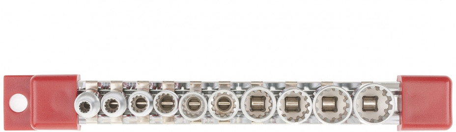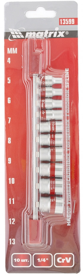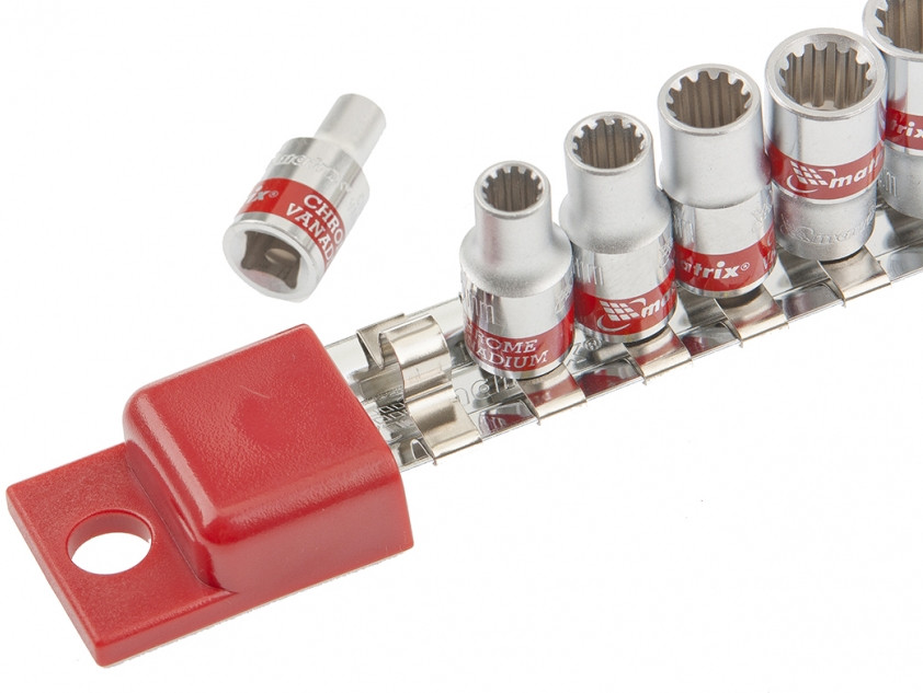 Matrix MTX Набор универсальных торцевых головок 1/4"В данный момент этот товар отсутствует в продаже. Возможно, у нас найдется аналогичный или похожий товар здесь. В набор входят торцевые головки с универсальным профилем SPLINE на планке под квадрат 1/4″ следующих размеров: 4 мм, 5 мм, 6 мм, 7 мм, 8 мм, 9 мм, 10 мм, 11 мм, 12 мм и 13 мм. Материал — CrV. |