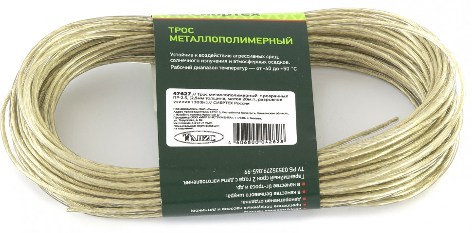 Сибртех Трос металлополимерный ПР-2.5 (2,5 мм толщина, моток 20 м.п.)-20% +42