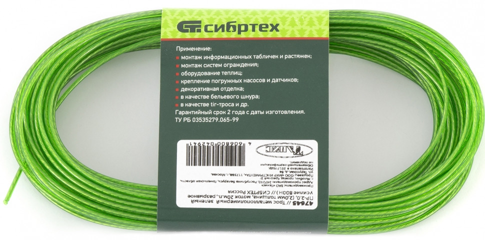 Сибртех Трос металлополимерный ПР-2.0 (2.0 мм толщина, моток 20 м.п.)-20% +25