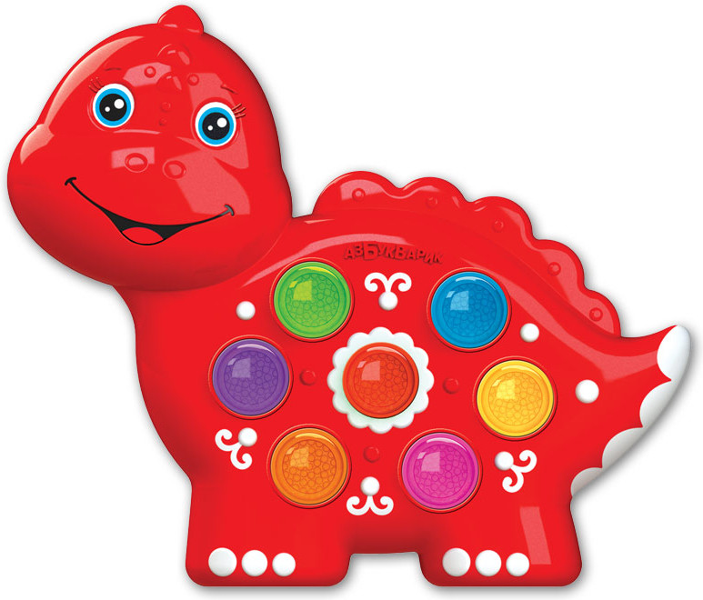 Динозаврик классный! Сынишке взяли на 1 годик 1 месяц, привлек внимание песнями и мигающими цветными кнопками, которые малыш сам нажимает, звук порадовал не очень громкий! Полностью соответствует описанию!