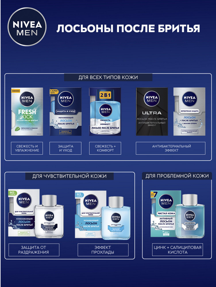 NIVEA Лосьон после бритья «ULTRA» с антибактериальным эффектом, 100 мл+118 приятный аромат не сушит экономичный расход
