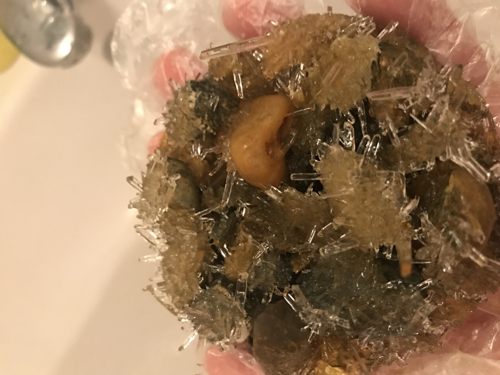 В коробке был треснутый контейнер для приготовления кристаллов. Перелили в другую ёмкость, посмотрим, что из этого получится.