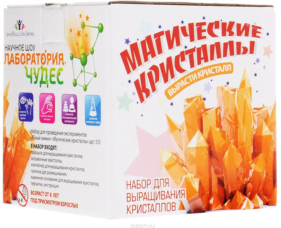 Все делали строго по инструкции, растет очень медленно у нас получилось 12 дней. После того как слили воду кристаллы прозрачные, не оранжевые и достаточно хрупкие. Т.к. в оранжевой воде его плохо видно и он очень медленно растет ребенок на 3 день потерял интерес но в целом результат понравился. Я как мама ожидала от эксперимента большего.