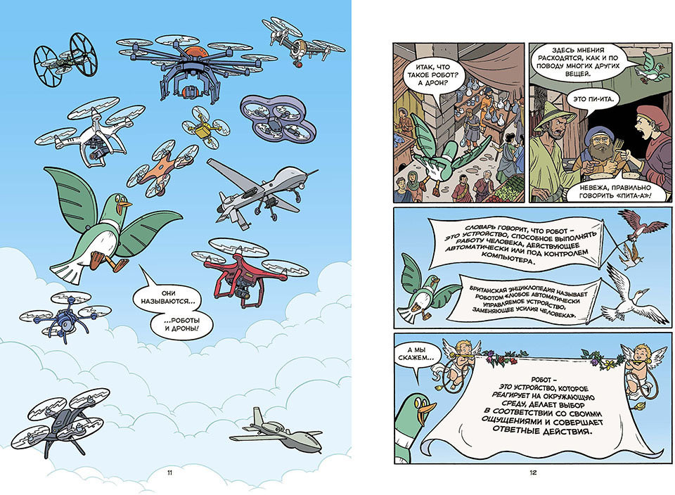 Нам с сыном (8 лет) книга понравилась! Впервые его не устрашил объем книги и он, не расставаясь с ней в школе и на тренировках, прочитал/просмотрел ее за несколько дней. Для меня интересно было усвоить чем робот отличается от дрона, где они нас окружают в привычных местах и прочее