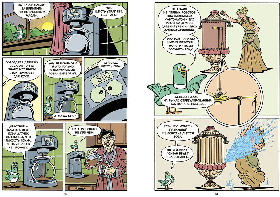 Роботы. Научный комиксВ данный момент этот товар отсутствует в продаже. Возможно, у нас найдется аналогичный или похожий товар здесь. Серия: Комиксы Роботы окружают нас везде — дома, в школе и на улице, в офисах и больницах, в небе и на земле. Они помогают человеку, но мало кто знает, как роботы устроены.Вместе с Пули, первой механической птицей, отправляйтесь в путешествие по истории робототехники — от подающих чай кукол в древней Японии до современных марсоходов. Вы узнаете, кто придумал первого робота, чем робот отличается от дрона, как устроены простые и сложные домашние помощники, как работает марсоход, как запрограммировать робота и многое другое. А главное, эта книга может стать вдохновением для нового поколения инженеров и программистов роботов! |