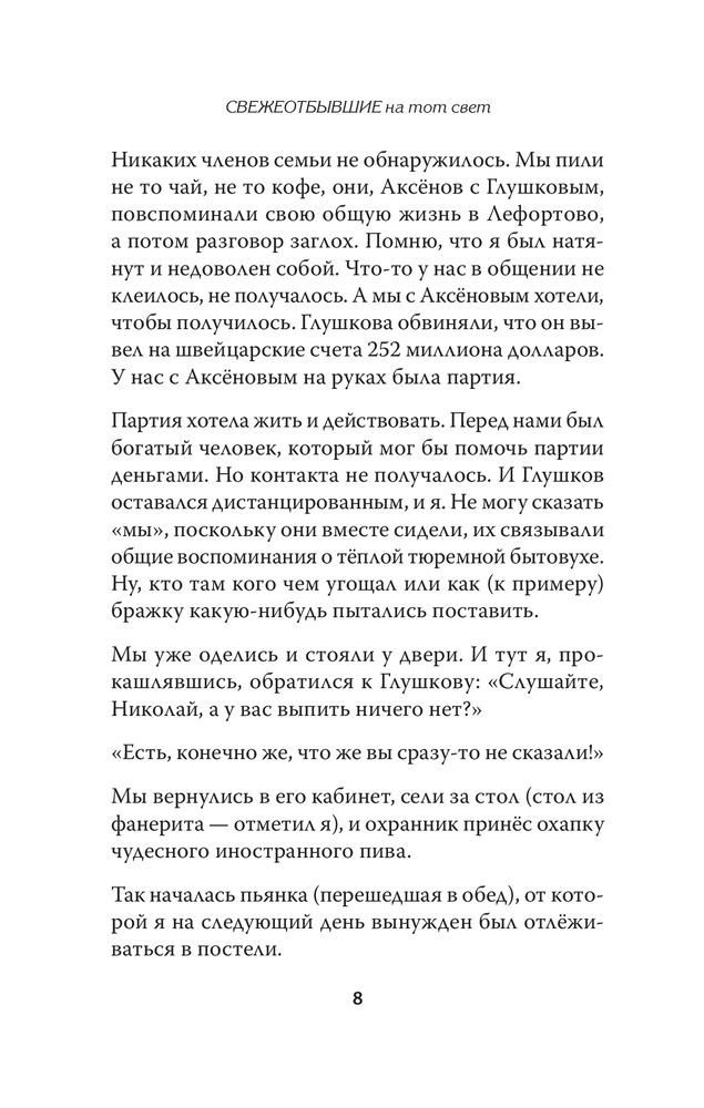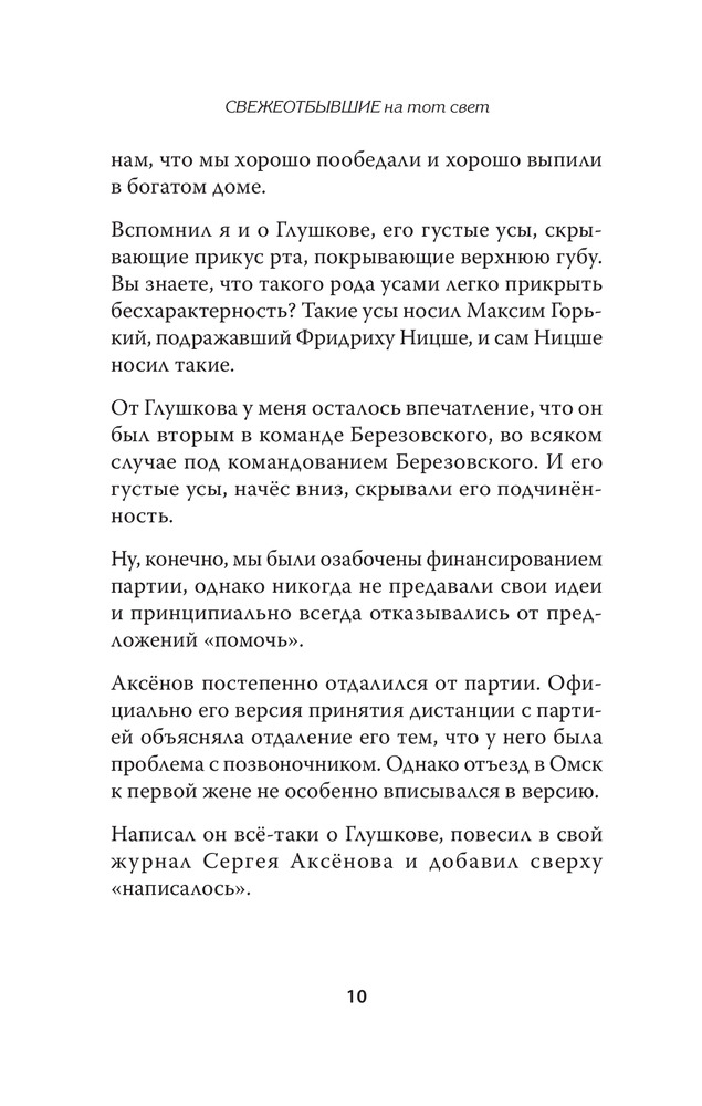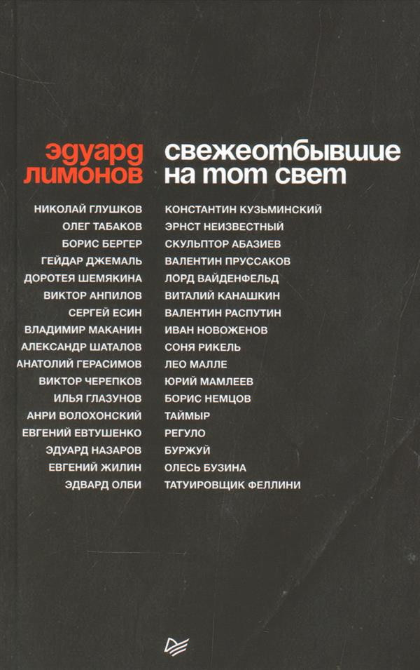 Свежеотбывшие на тот светВ данный момент этот товар отсутствует в продаже. Возможно, у нас найдется аналогичный или похожий товар здесь. Серия: Публицистический роман Лимонов продолжает начатый в «Книге мертвых» печальный список людей, которые, покинув этот мир, остаются в багаже его памяти. Художники, олигархи, актеры, нацболы, писатели и политики — пёстрая толпа, на которую Лимонов бросил быстрый и безжалостный взгляд. Он не испытывает сострадания к своим мёртвым, он судит их, как живых, не делая им скидок. |
