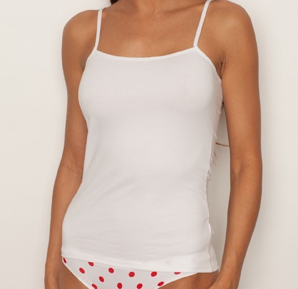Мягкая хлопковая майка. Нужно брать на размер больше. На мой 46 хорошо подошёл 48. Удобна в носке)