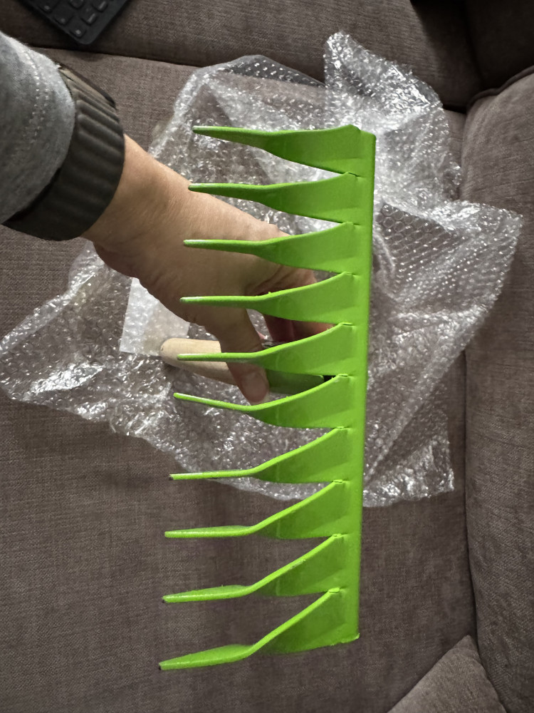 Очень хорошая грабелька, жёсткая, пользуюсь несколько лет, не гнется