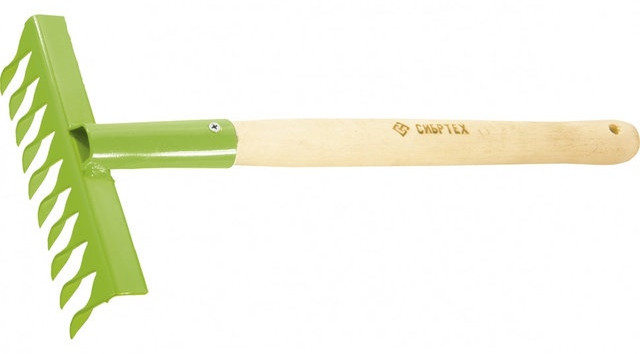 Грабельки чудесные - крепкие металлические зубцы и основательная удобная деревянная ручка.