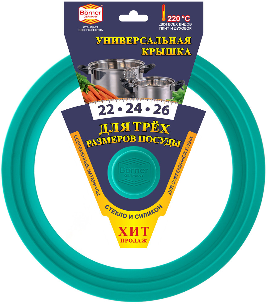 Крышка супер!!! Действительно на три размера кастрюль подходит. Силиконовый ободок очень плотно прилегает. Имеется отверстие для выхода пара.