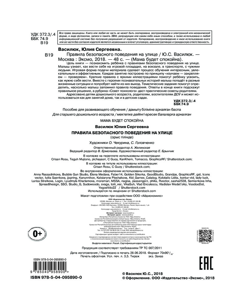 💳 Оплатить за товар можно при получении 🇰🇿 Есть бесплатная доставка по Казахстану от 1 дня 🎁 Копите бонусы с каждой покупки Серия: Мама будет спокойна Книга для заботливых родителей, которые хотят научить детей безопасному поведению на улице! Важнейшая задача для родителей — научить ребёнка безопасному поведению на улице. В нашей книге в простой, доступной и интересной для малыша форме рассматриваются основные возможные случаи, которые могут произойти с ребёнком на улице. Послушав интересную историю, обсудив её с родителями, малышу гораздо проще сделать выводы и запомнить нехитрые правила безопасного поведения, чем тогда, когда ему втолковывают их в форме «это нельзя» и «так не делают». Занимаясь с малышом по книге, родители добьются успеха в обучении ребёнка правилам поведения. Ведь если ребёнок умеет вести себя безопасно — мама всегда будет спокойна! |
