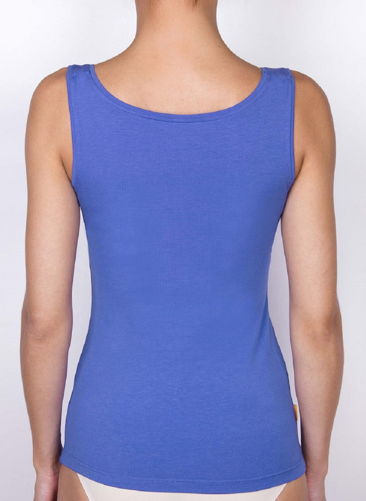 Облегающая майка, выполненная из высококачественного хлопка. Модель имеет овальный вырез горловины, срезы горловины и пройм обработаны узкой обтачкой из материала изделия, нижняя часть подвёрнута и отстрочена.