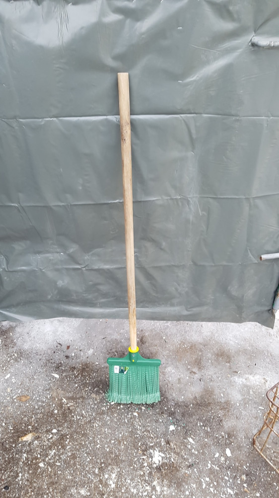 метла жестковата, для подметания пойдет, но можно будет убирать и твердые материалы, если приложиться.