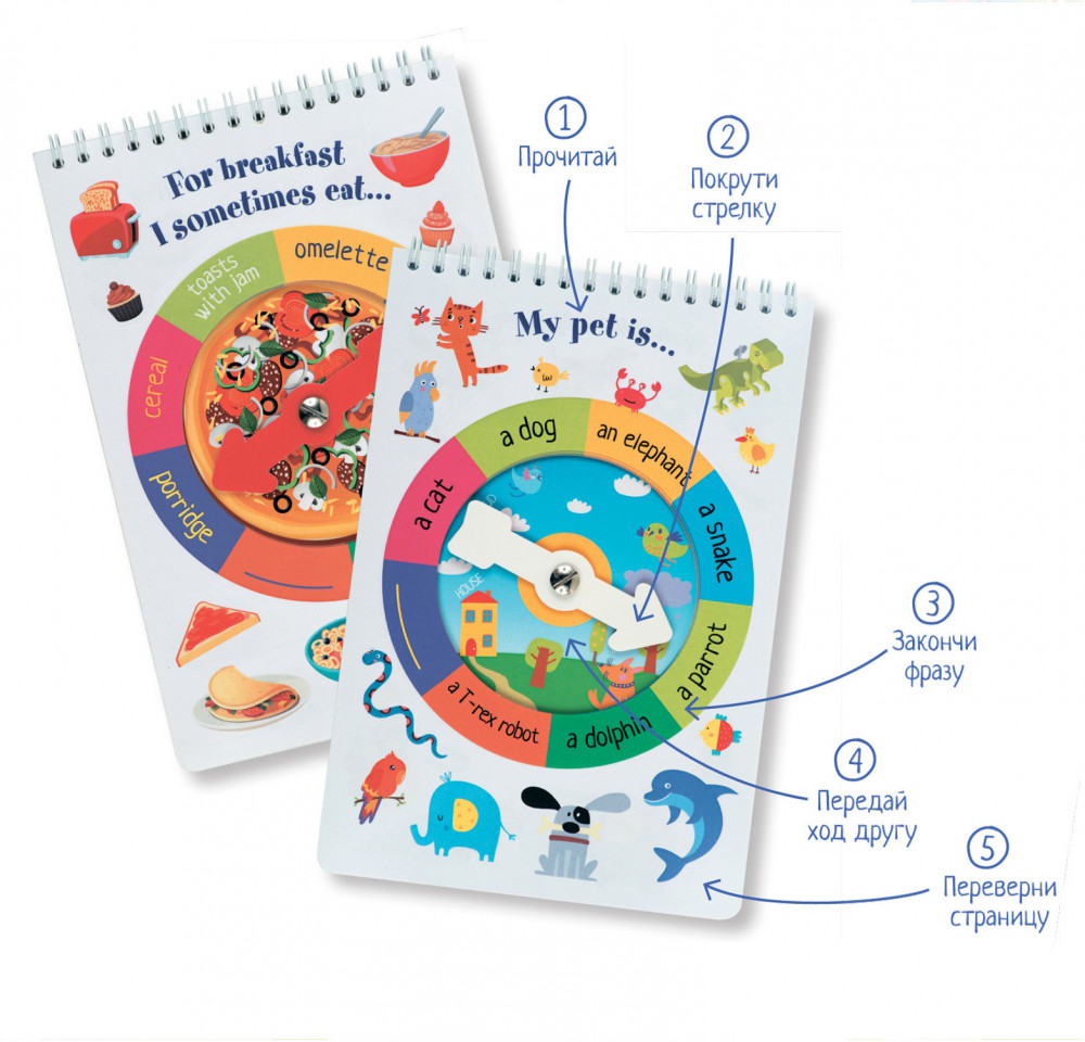 Волшебное колесо.English. Человек, семья, питомцы (Person, family, pets)В данный момент этот товар отсутствует в продаже. Возможно, у нас найдется аналогичный или похожий товар здесь. Серия: Волшебное колесо Необычная игра, которая поможет выучить английские слова по теме «Человек, семья, питомцы», научит их использовать и написать свой рассказ. Блокнот на пружине в плотной красочной обложке. Каждая его страница — это игровое поле с вращающейся стрелкой посередине. Покрутите стрелку и дополните выпавшим словом предложение вверху страницы. |