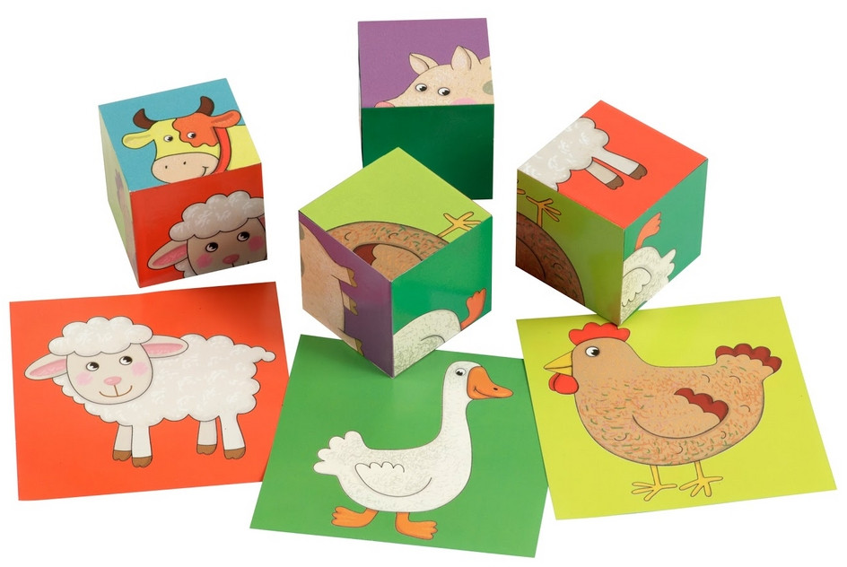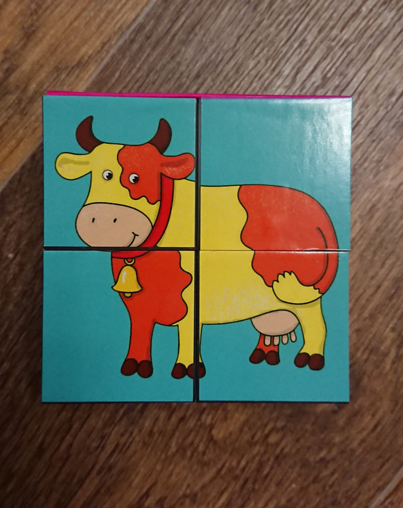 Маленькие яркие кубики. Картинки наклеены немного криво, из-за чего изображения совпадают не идеально