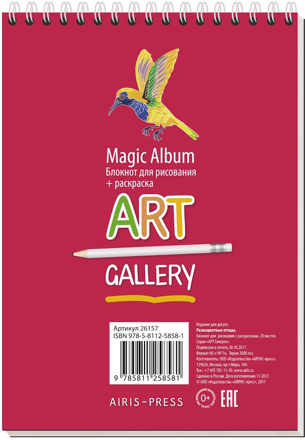 Блокнот. Разноцветные птицыВ данный момент этот товар отсутствует в продаже. Возможно, у нас найдется аналогичный или похожий товар здесь. Серия: АРТ Галерея Art Gallery Magic Notebook «Разноцветные птицы» — уникальный блокнот для творчества 2 в 1. Вы можете рисовать в нём сами или просто раскрашивать готовые картинки в поисках вдохновения. Качественная бумага для рисования позволит рисовать даже акварелью. Удобный дорожный формат. Берите этот блокнот с собой и рисуйте или раскрашивайте там, где вам удобно. |