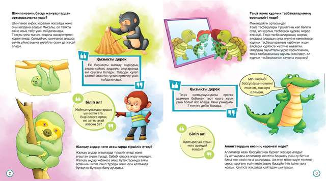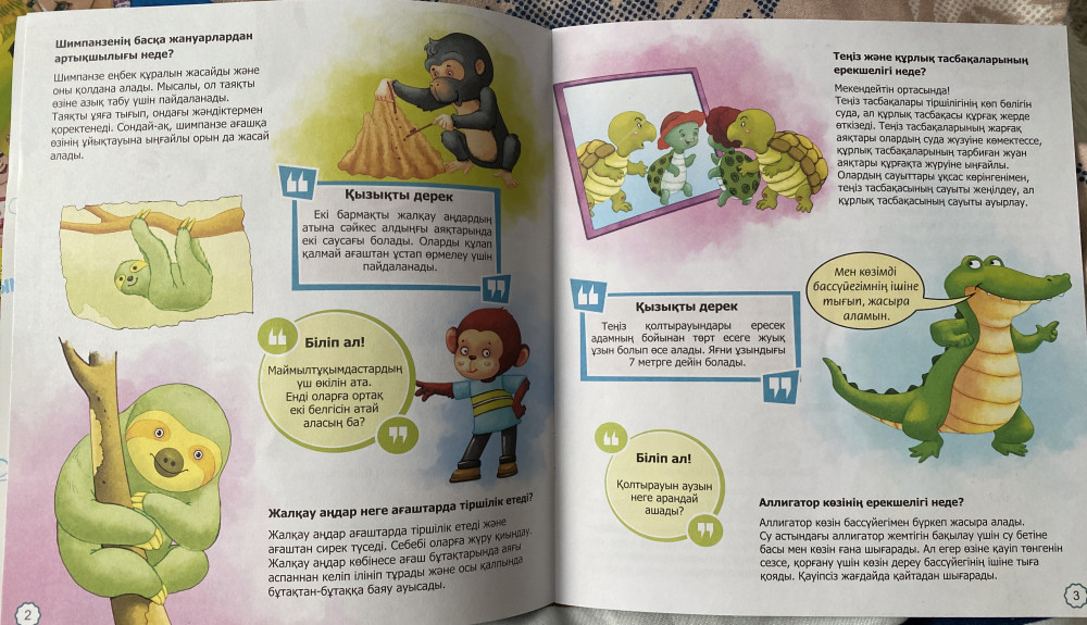 Очень довольна этой книжкой. Ппрямо энциклопедия для детей, для почемучек, радует то , что книжка на казахском языке интересная, познавательная. Ребенок читает с удовольствием и рассказывает нам. Большое спасибо.